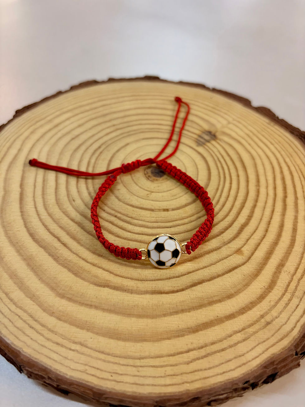 Red macrame football bracelet
